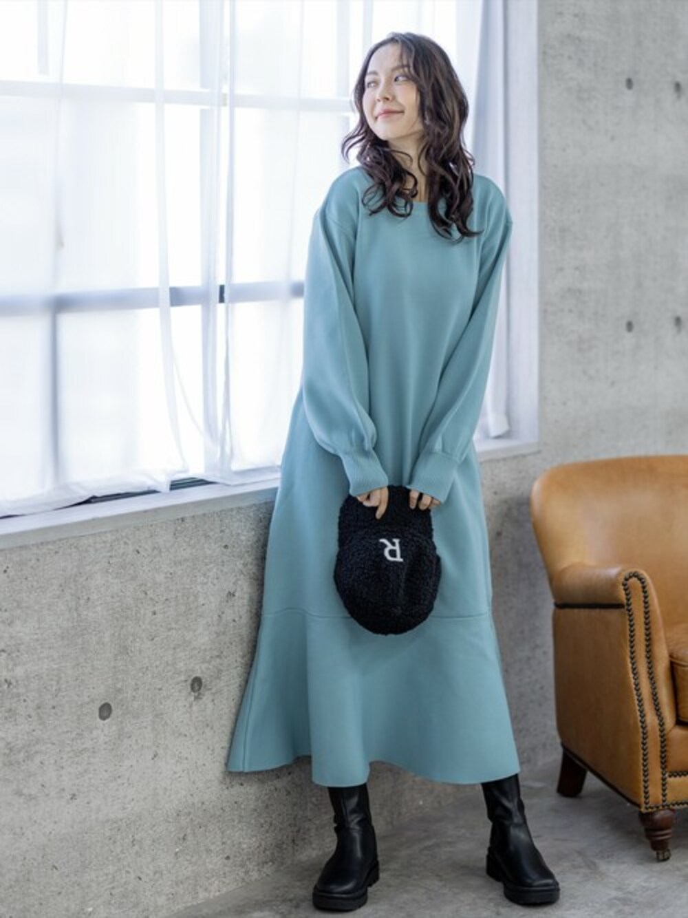 clear(クリア)(clear)のワンピース「ボトムフレアロングニットワンピース ≪2022AW新作≫」を使ったコーディネート