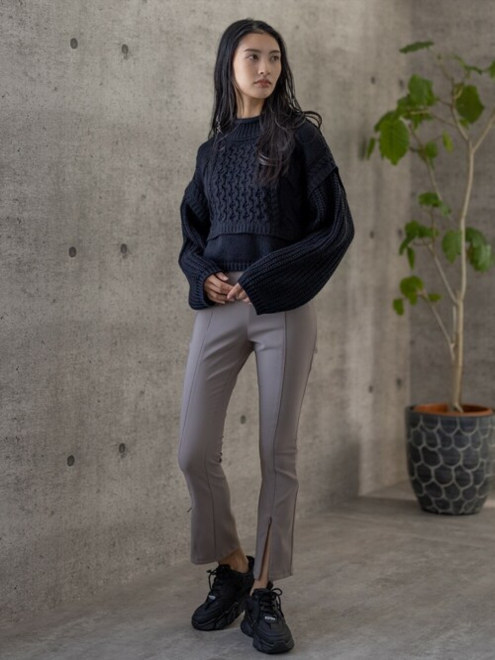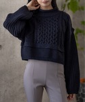 clear(クリア)(clear)のニット/セーター「編地切り替えショートニットトップス」を使ったコーディネート