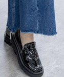 シアードットブラウスがフェミニンさを強調しつつ、フロントリングショートパンツと エナメルローファーがクールな印象を与え、大人可愛いスタイルに仕上がります。