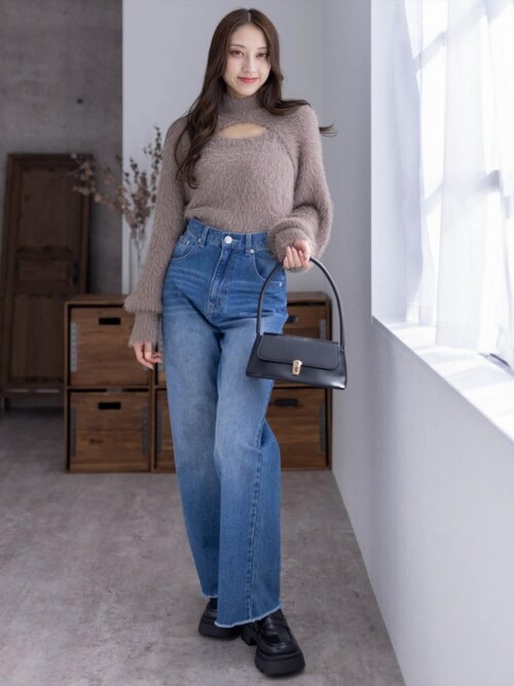 clear(クリア)(clear)のニット/セーター「レイヤードフェザーショートニットトップス」を使ったコーディネート