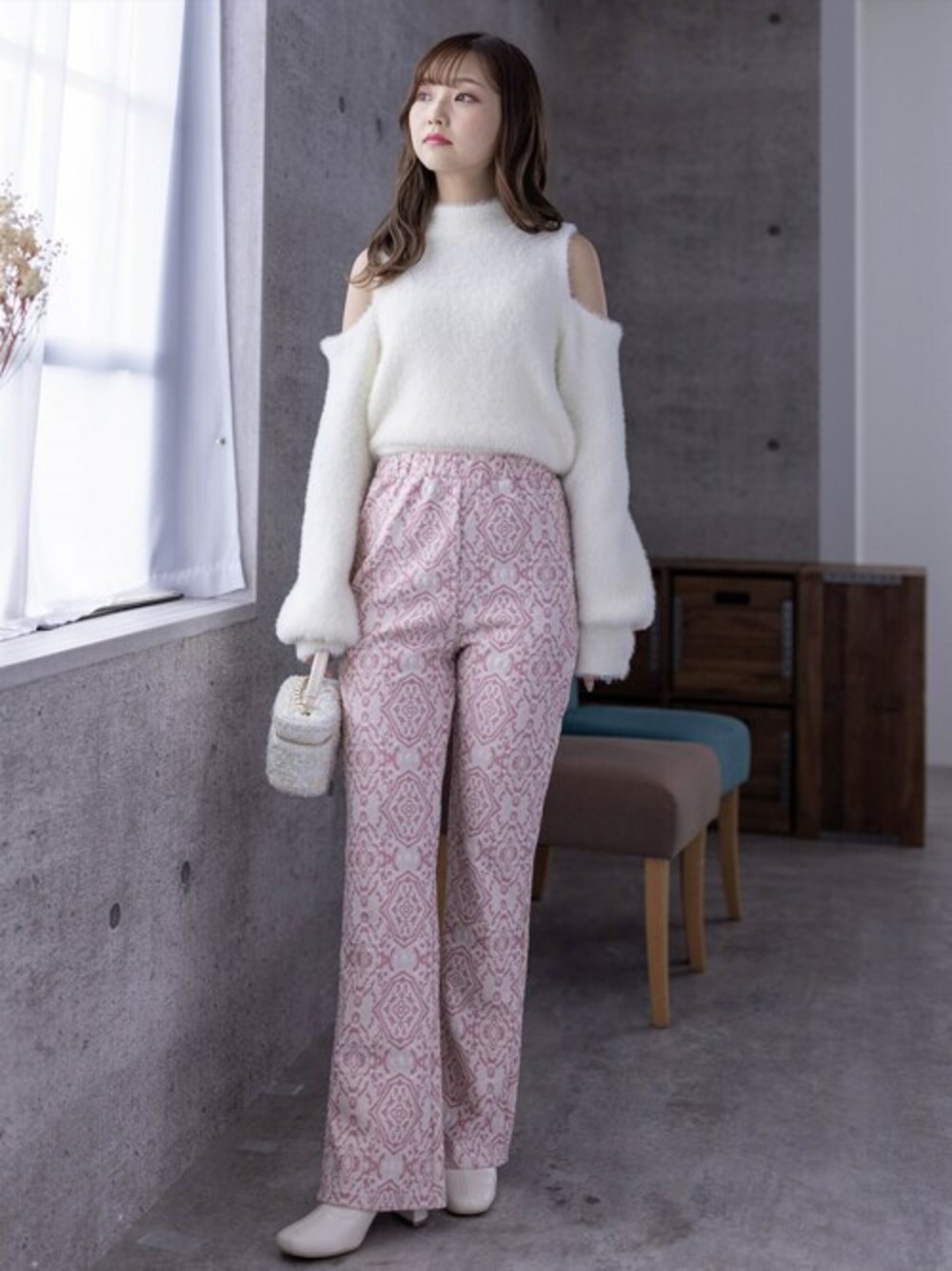 clear(クリア)(clear)のニット/セーター「フェザーオープンショルダーニットトップス」を使ったコーディネート
