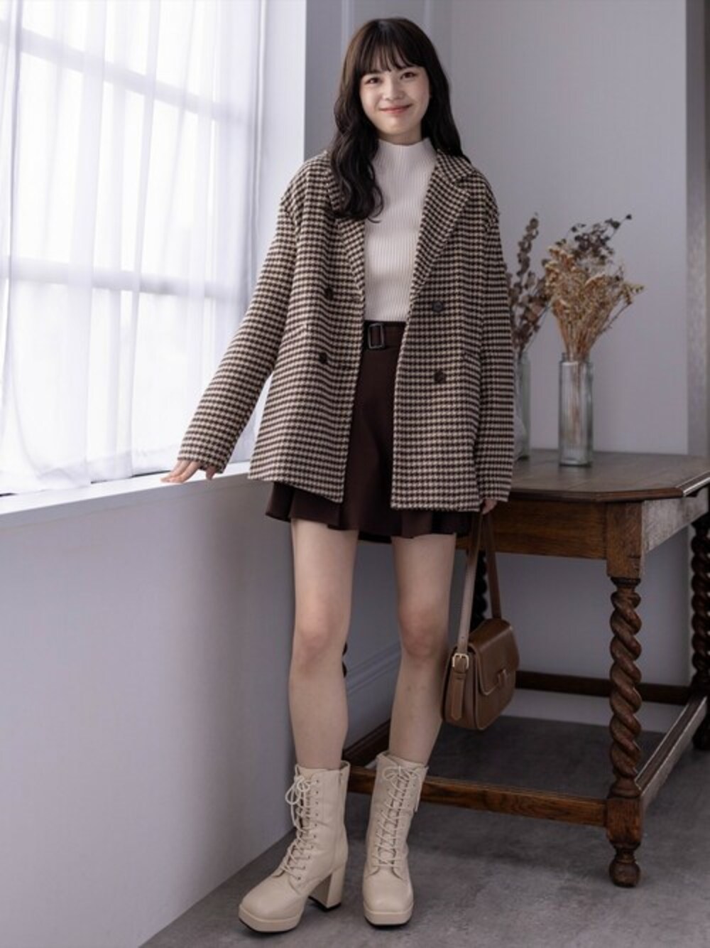clear(クリア)(clear)のチェスターコート「ミディアム丈オーバーサイズダブルコート[低身長用サイズ有]」を使ったコーディネート