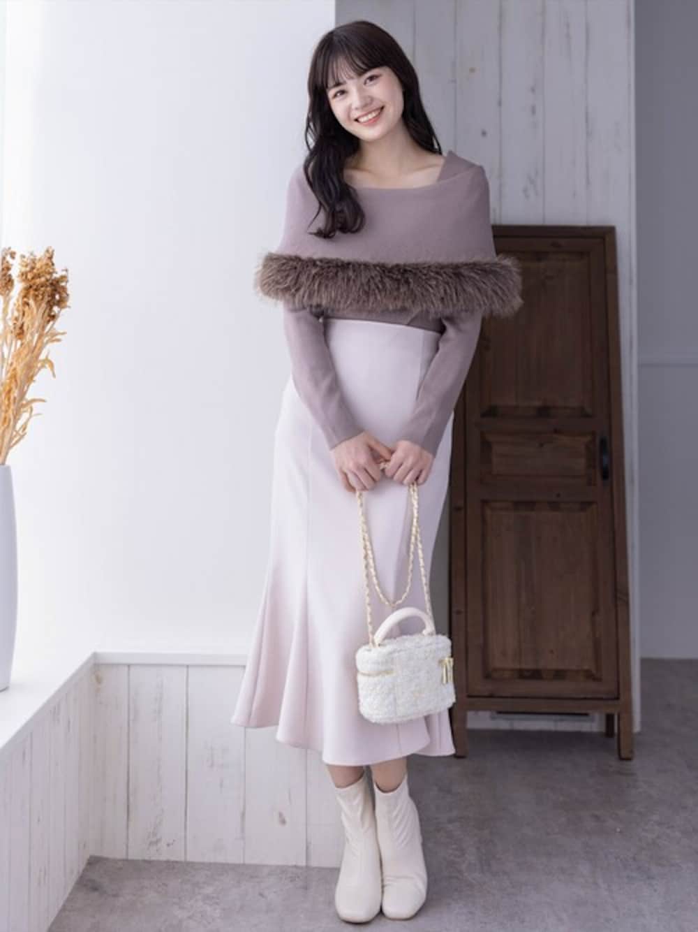 大きなケープにファーをつけることで上品な印象になるニットトップス。サイズ感もコンパクトなので、細見えします◎また、肌触りが滑らかなので着心地も抜群です!