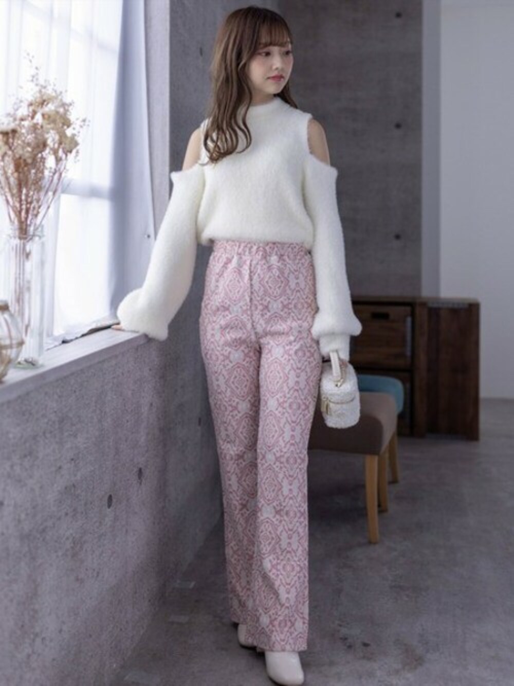 clear(クリア)(clear)のニット/セーター「フェザーオープンショルダーニットトップス」を使ったコーディネート
