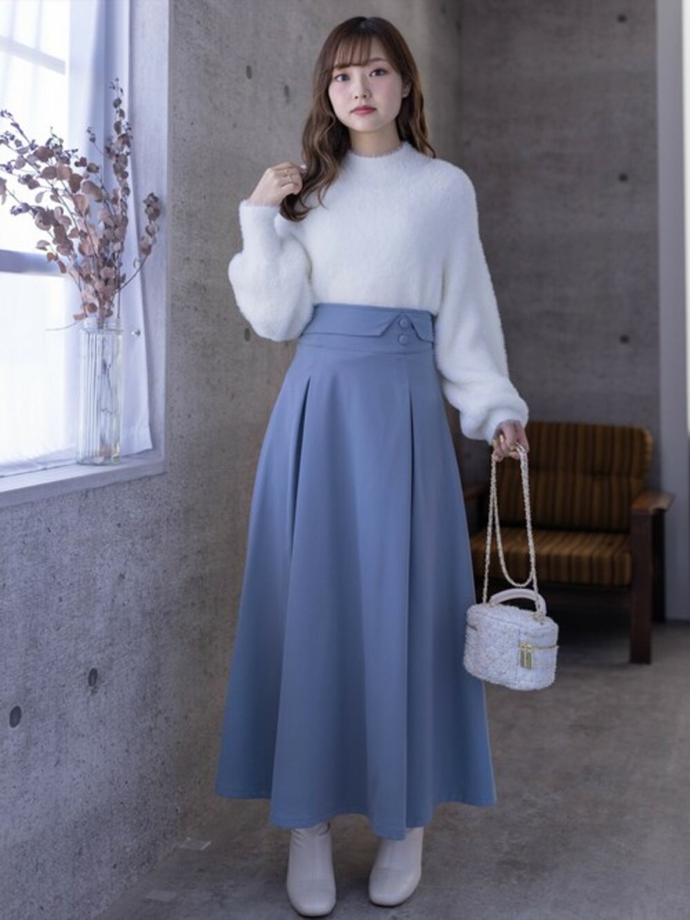つい触りたくなるようなふわふわとしたフェザーニット。ハイネックなので寒い冬にも最適のアイテムです!また、シルエットを拾わないのでどんなアイテムにも合わせやすいです!
