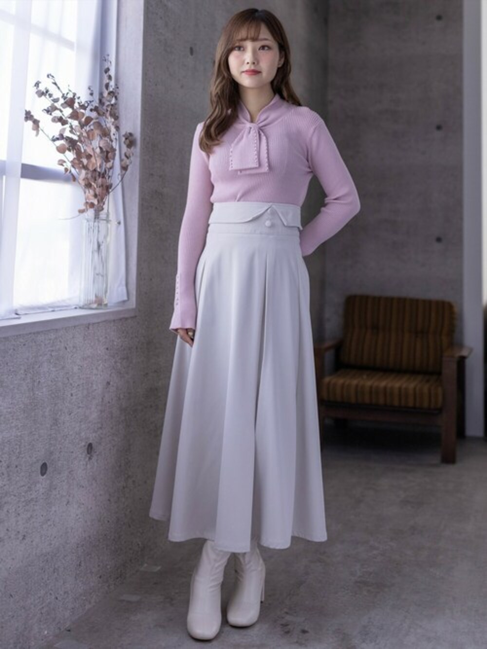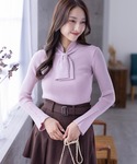 clear(クリア)(clear)のニット/セーター「ネックパールリボンリブニットトップス」を使ったコーディネート