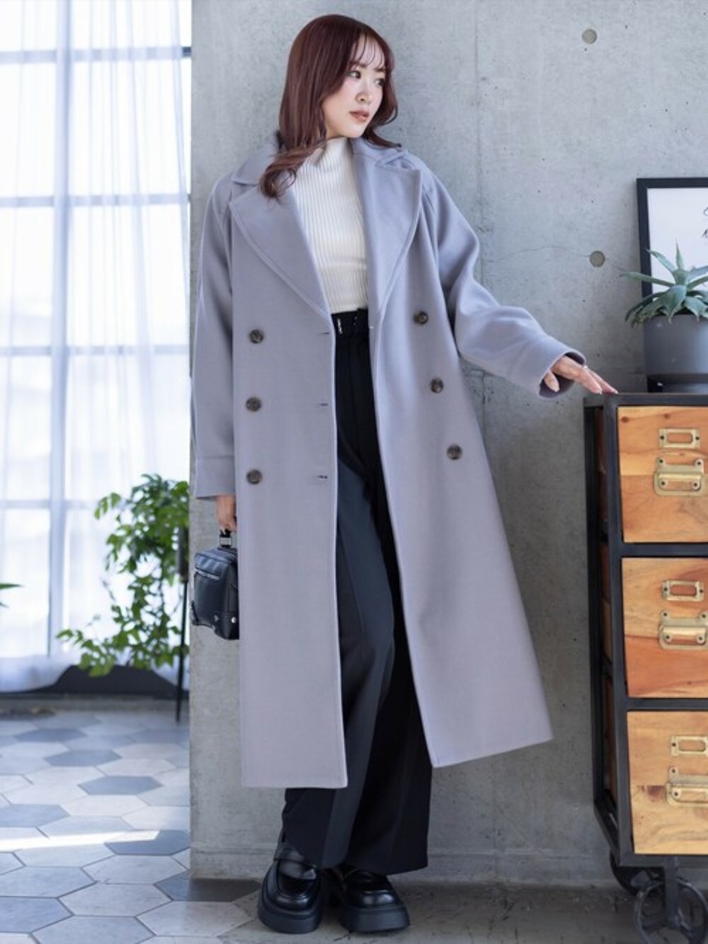 clear(クリア)(clear)のチェスターコート「ダブルロングコート[低身長用サイズ有]」を使ったコーディネート