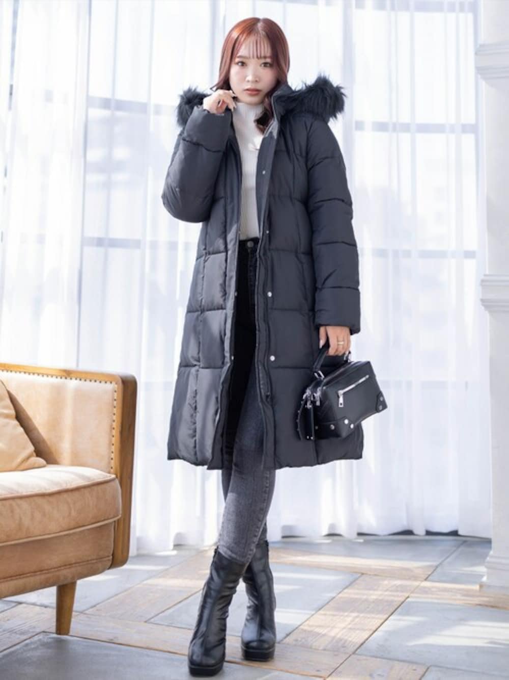 clear(クリア)(clear)のダウンジャケット/コート「ベルト付きロング丈中綿ダウン」を使ったコーディネート