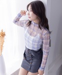 clear(クリア)(clear)のTシャツ/カットソー「チェック柄チュールシアートップス」を使ったコーディネート