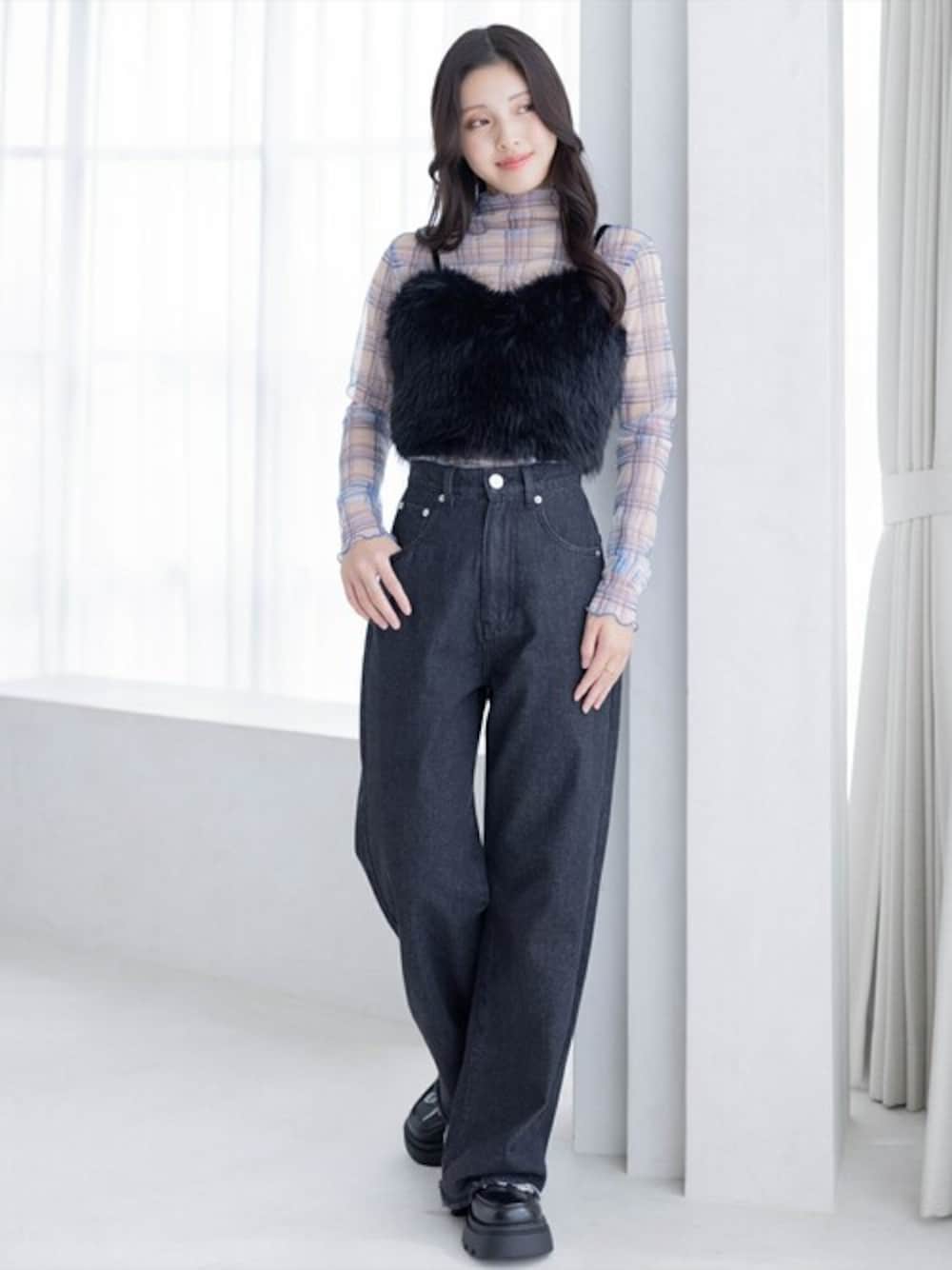 ファーが主役級でコーディネートを一段とお洒落に見せてくれるビスチェ。 後ろがリボンで括っていただける仕様になっているので、どこから見ても可愛らしいです♪