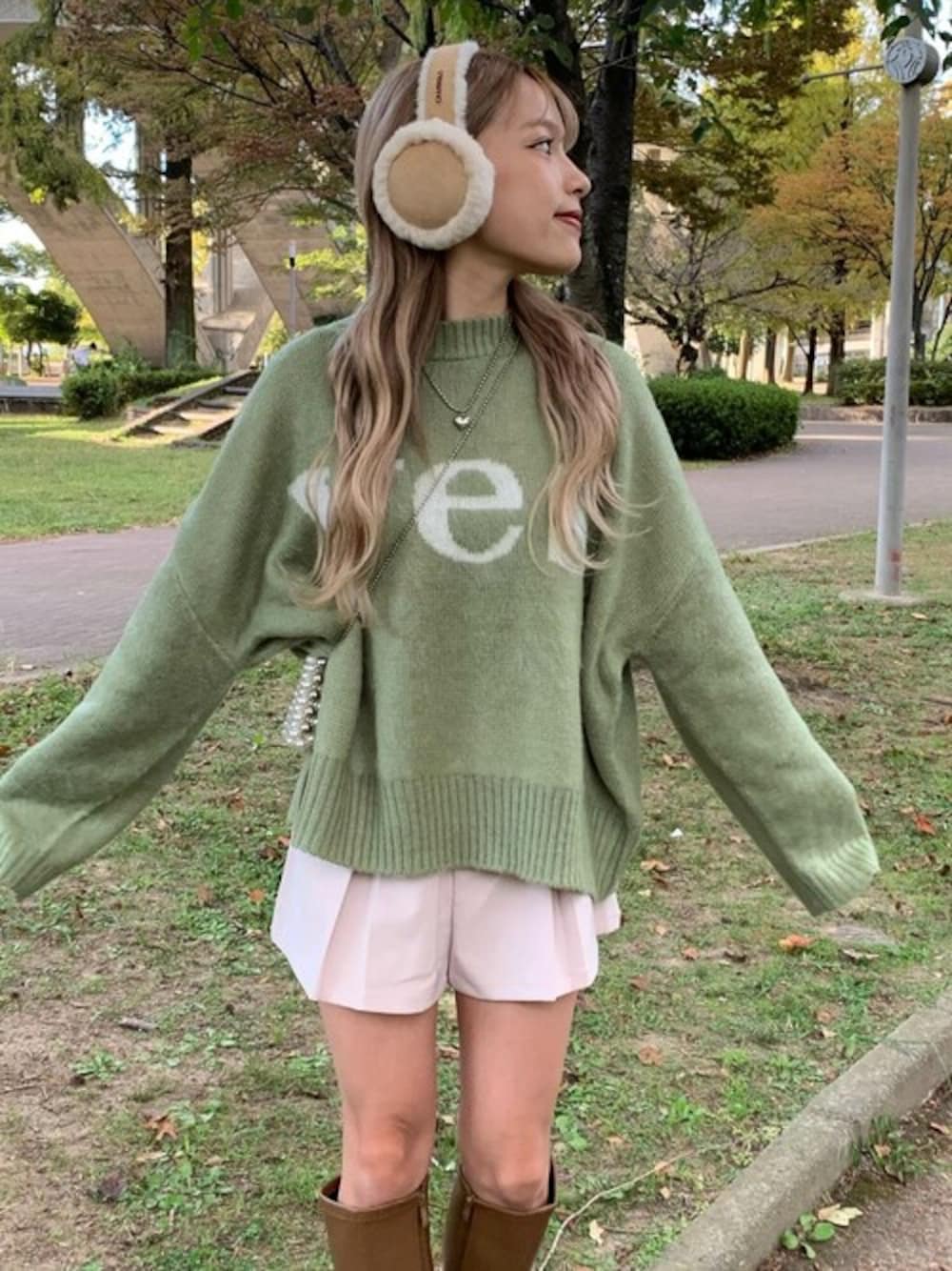 甘すぎず、大人カジュアルな着こなしも叶うオーバーニット。程よい丈感で気になる部分もしっかりとカバーしてくれます!また、YESのロゴがインパクトがありコーディネートをまとめてくれます。