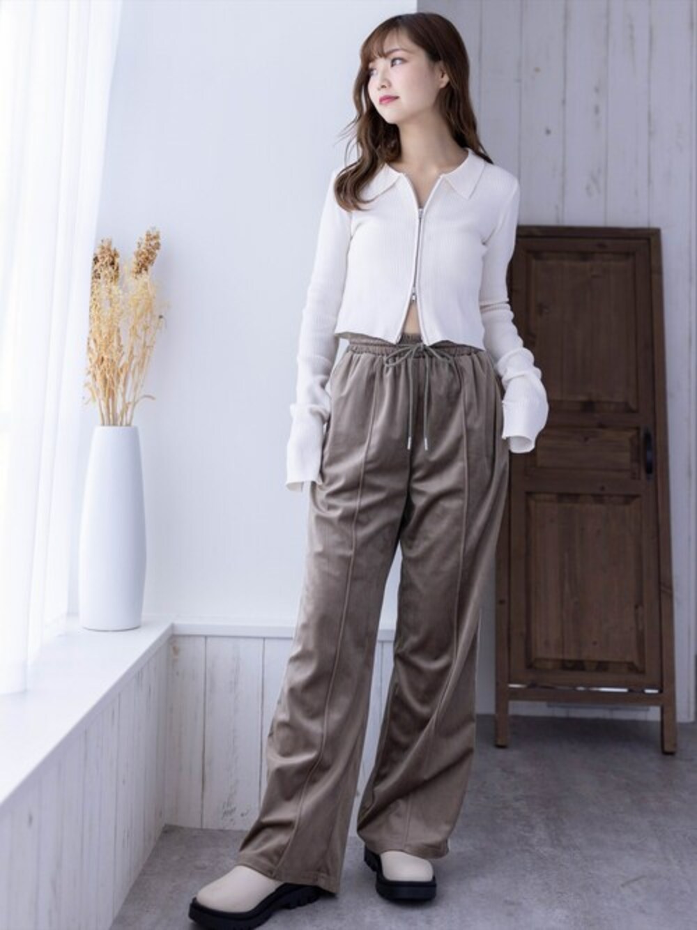 カジュアルなスタイリングにぴったりなパンツです! ベロアなので光沢感がワンポイントになります。 また、ウエストゴムなのでリラックス効果も期待できます!