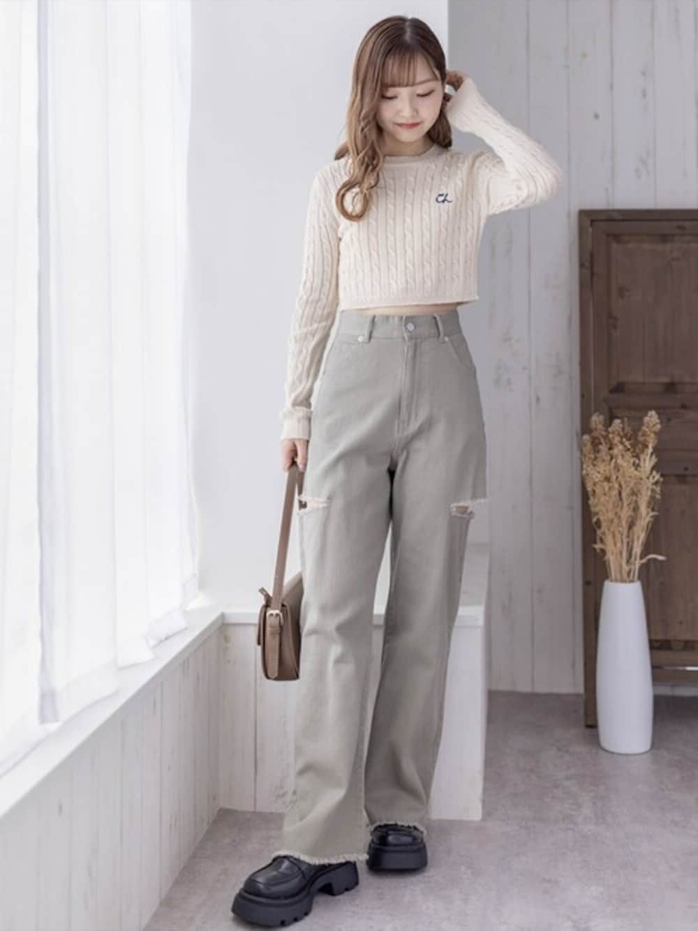 clear(クリア)(clear)のニット/セーター「ケーブル編みショート丈長袖ニットトップス≪2024SS新作≫」を使ったコーディネート