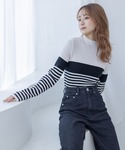 clear(クリア)(clear)のニット/セーター「ボーダーハイネックニットトップス」を使ったコーディネート