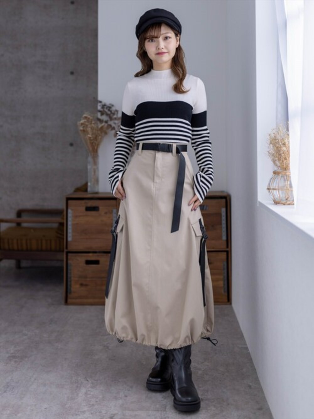 あまりラインを拾わず、シルエットが綺麗に見えるスカートです!裾がドロストで調整できるので、その日の気分によって楽しんでいただけます♪サイズ展開も2種類あるのでどの方にも着ていただけます!