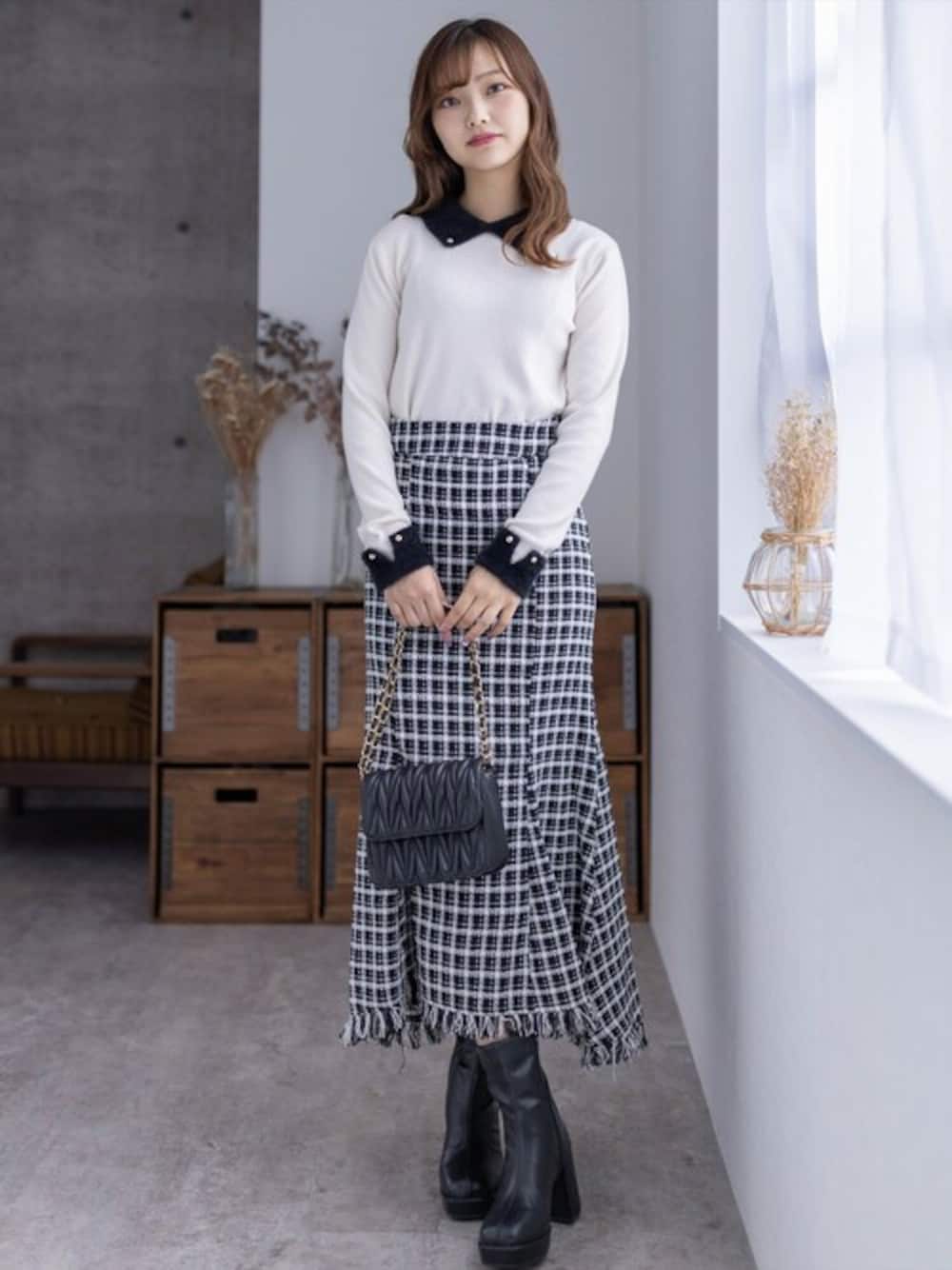 clear(クリア)(clear)のニット/セーター「【WEB限定】フェザー配色襟付ニット[大人 可愛い フェミニン 着回し抜群]≪再入荷≫」を使ったコーディネート