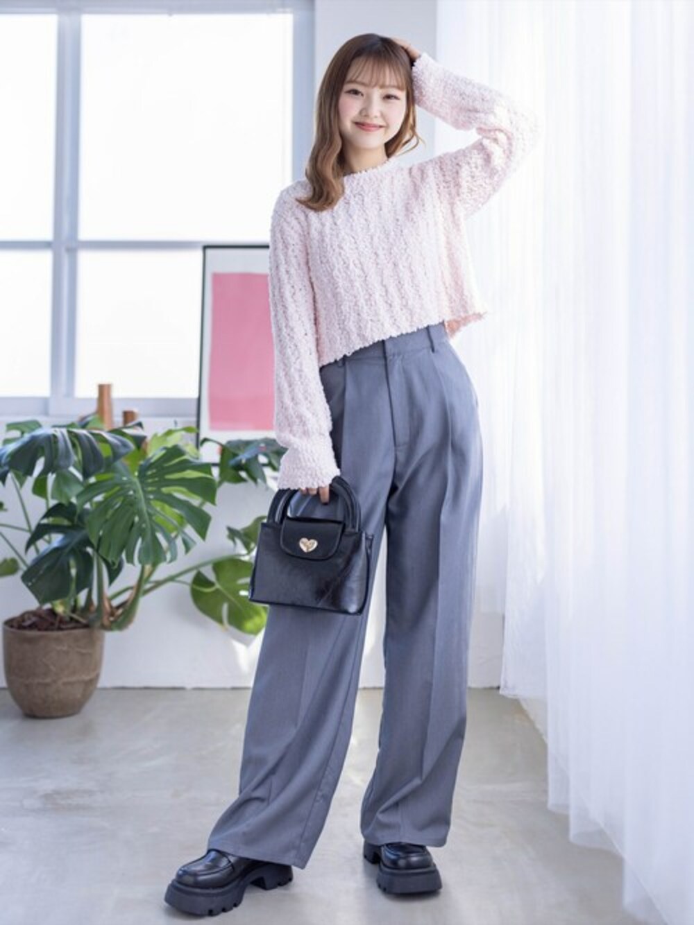 clear(クリア)(clear)のニット/セーター「長袖ショート丈ポップコーンニットトップス[骨格ウェーブ フェミニン レイヤード 着回し抜群]≪再入荷≫」を使ったコーディネート