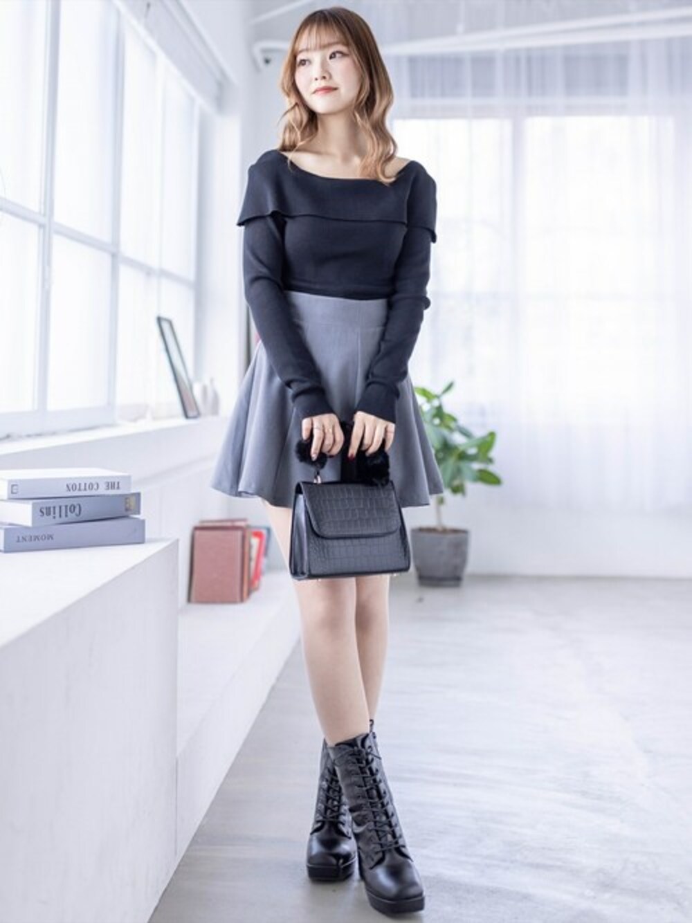clear(クリア)(clear)のニット/セーター「オフショルデザイン長袖ニットトップス≪2024SS新作≫」を使ったコーディネート