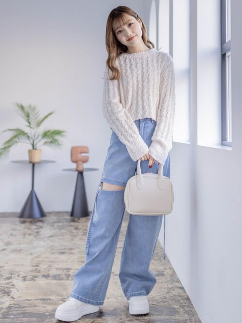 clear(クリア)(clear)のニット/セーター「長袖ショート丈ポップコーンニットトップス[骨格ウェーブ フェミニン レイヤード 着回し抜群]≪再入荷≫」を使ったコーディネート