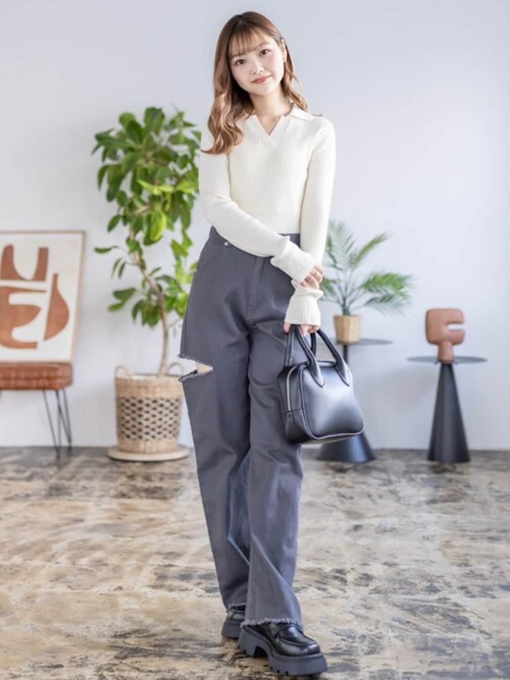 clear(クリア)(clear)のニット/セーター「ポロネックリブニットトップス[着心地抜群 韓国 細見え]≪2024SS≫」を使ったコーディネート