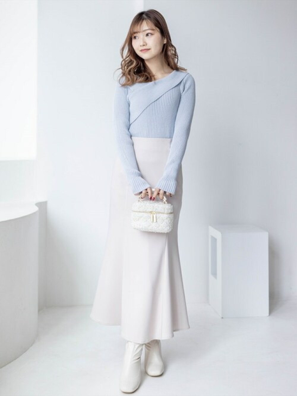 シンプルなデザインとアシンメトリーなVネックがモードな印象を抱かせてくれる長袖ニットトップス。ボディラインにピッタリとフィットし女性らしさも高まりやすいので、レディライクなコーデが好きな方には特にオススメなアイテムです。