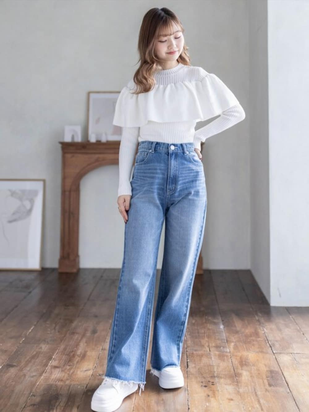 ギャザーの入ったケープが目を引くニットトップス。身頃と袖はシンプルなシルエットなので、コーディネートに取り入れやすいアイテムです!女性らしいスタイリングがお好きな方にオススメです♪