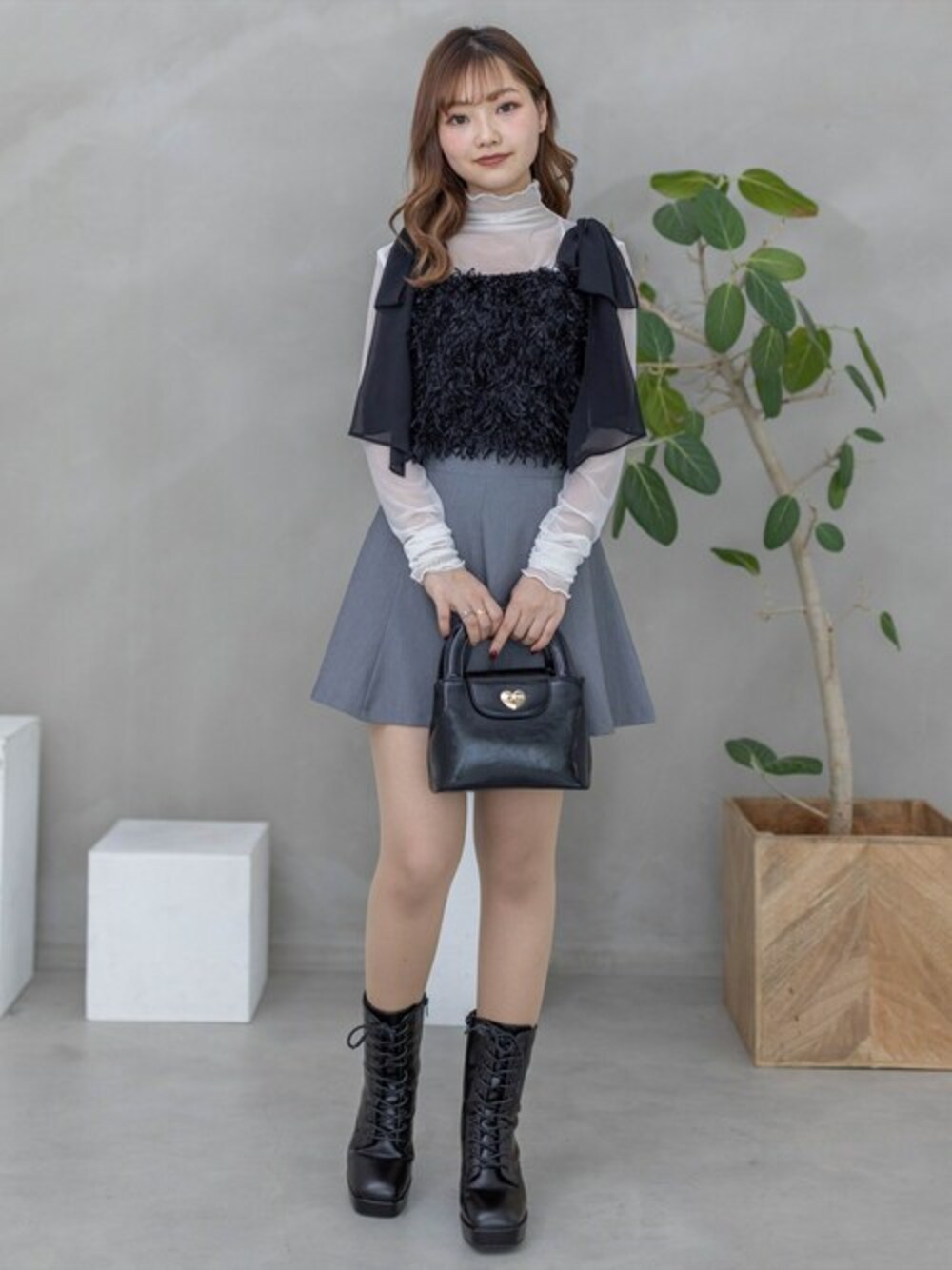 clear(クリア)(clear)のベスト「×肩リボンフェザービスチェ≪2024SS新作≫」を使ったコーディネート