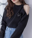 肩スリットでヘルシーな肌見せが叶います♪付属のブローチは付け外し可能なので、お手持ちのアウターやマフラーにもおすすめです!畦編みなので、伸縮性があり凹凸感の雰囲気が高級感あります。