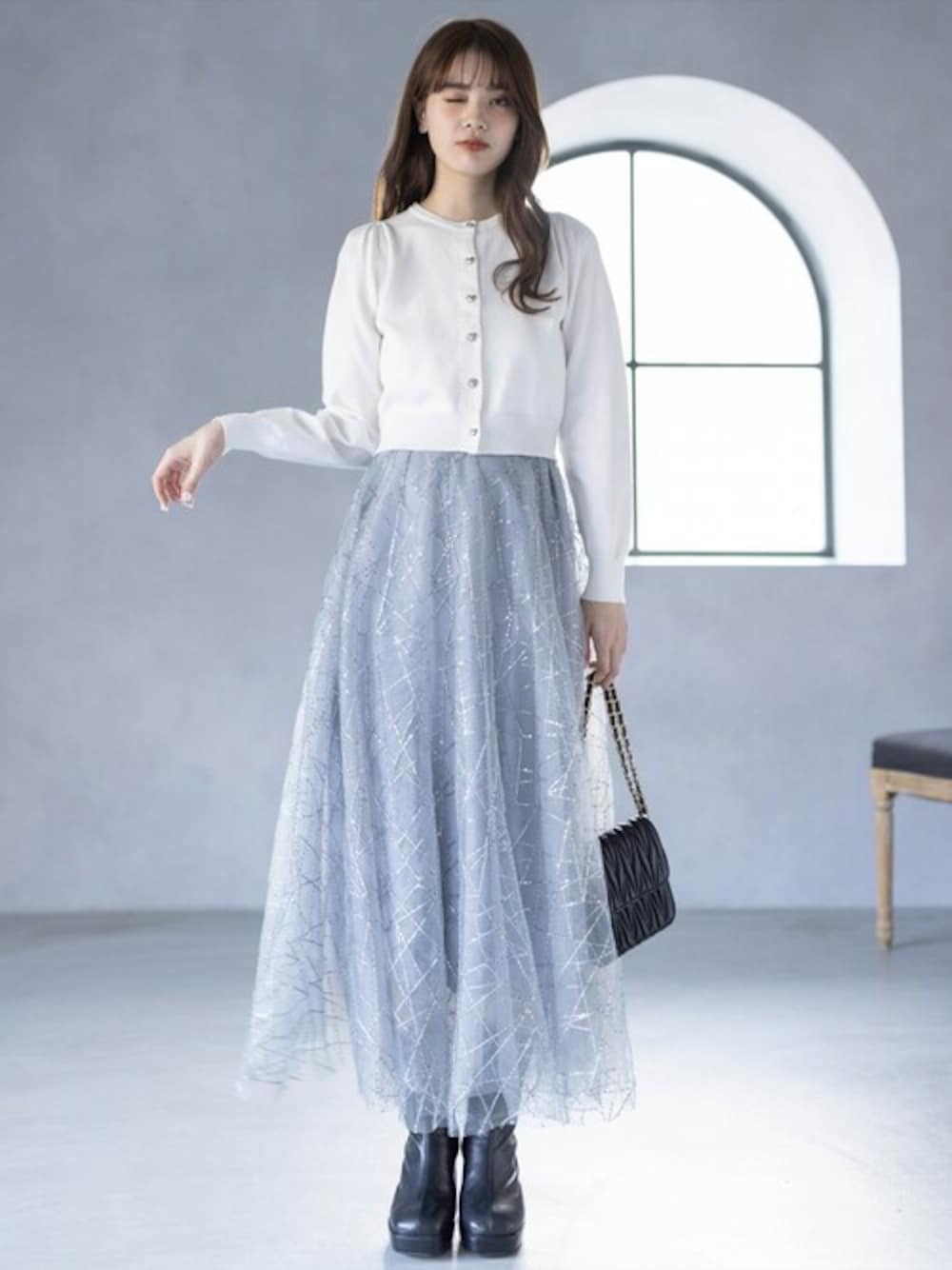 clear(クリア)(clear)のカーディガン/ボレロ「ハートボタンパワショルニットカーディガン≪2024SS新作≫」を使ったコーディネート