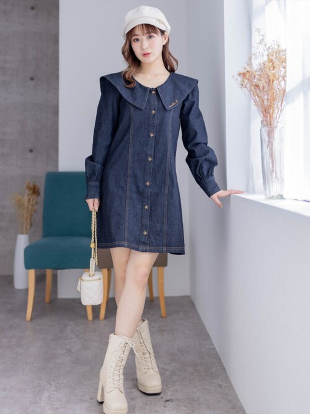 去年も人気だったデニムミニワンピースが刺繍入りになって再登場♪ビックカラーがついているので小顔効果もあります!1枚でお洒落見えするので、絶対に抑えたいアイテムです!