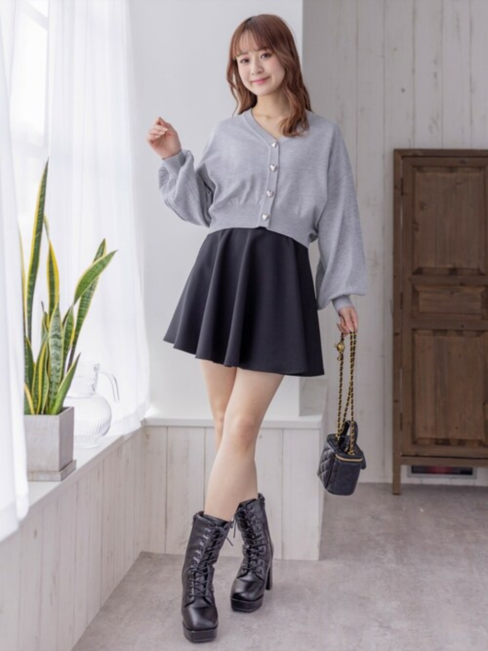 clear(クリア)(clear)のカーディガン/ボレロ「ハートボタンVネックニットカーディガン」を使ったコーディネート