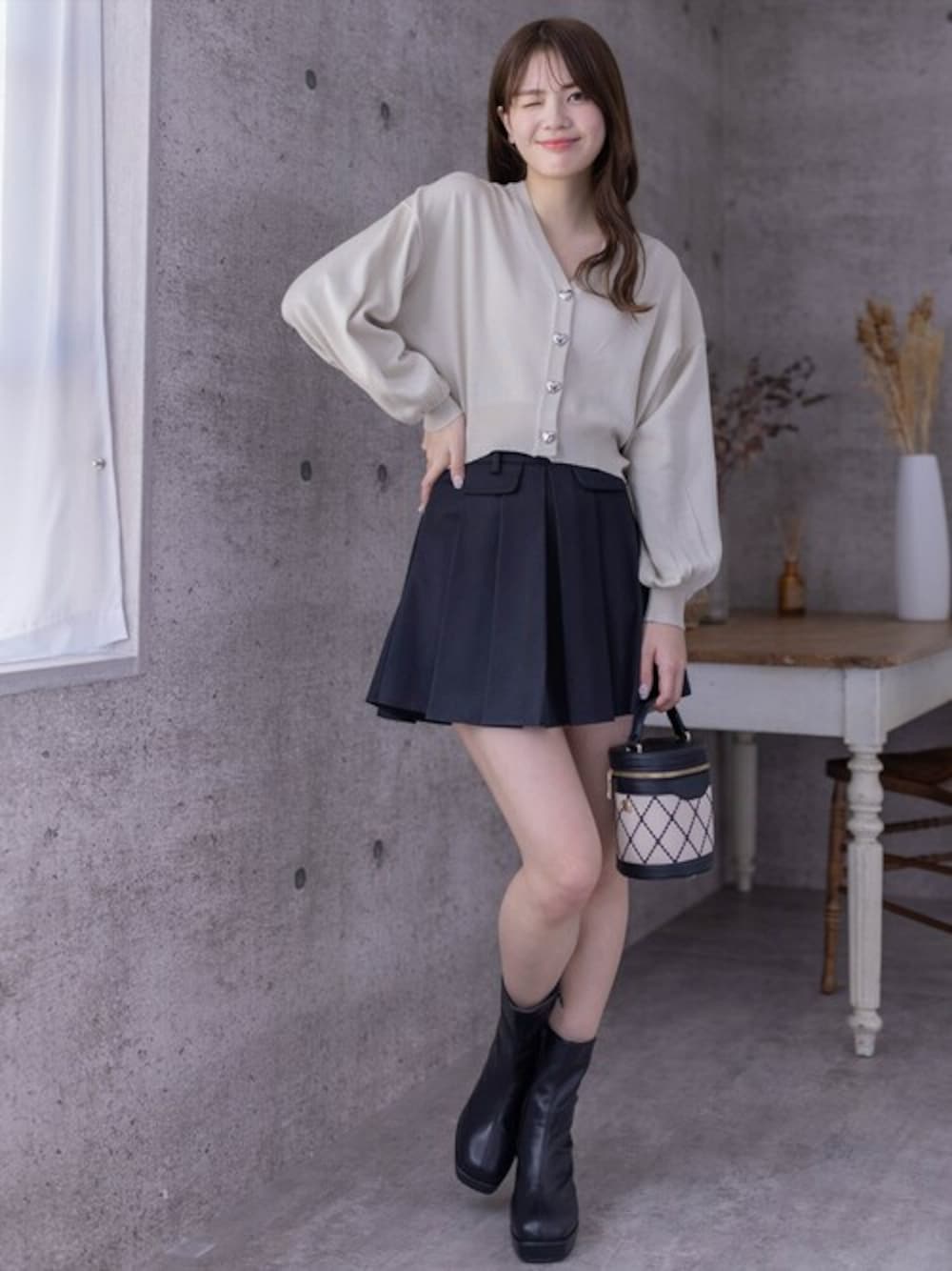 clear(クリア)(clear)のカーディガン/ボレロ「ハートボタンVネックニットカーディガン」を使ったコーディネート