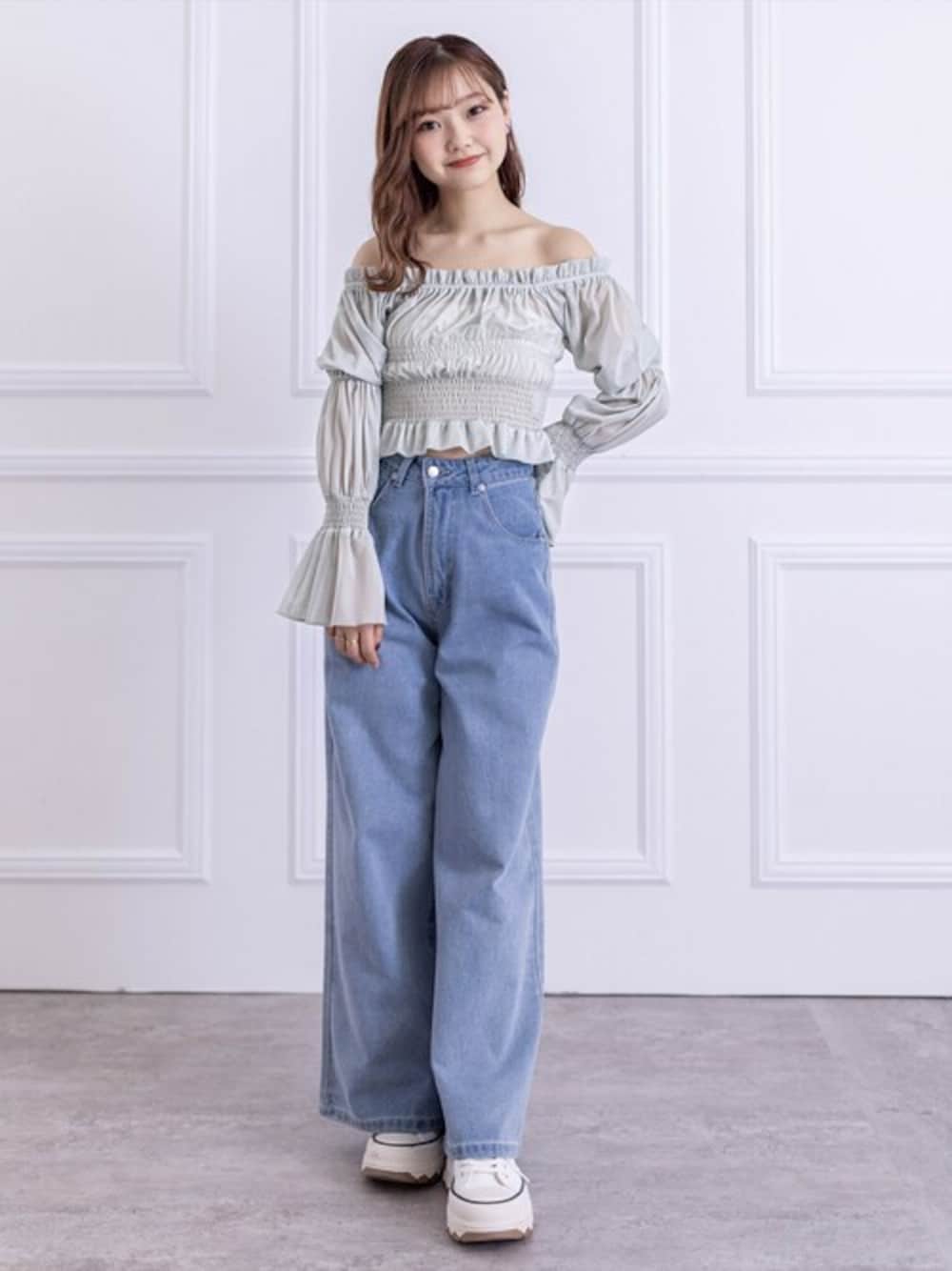 clear(クリア)(clear)のシャツ/ブラウス「≪再入荷≫オフショル2wayドットチュールブラウス[骨格ウェーブ 大人 カジュアル ウィッシュコア]」を使ったコーディネート