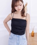 チュールでお洒落見えするカップ付のキャミソール。インナーとしてご活用いただいたり、暑い季節にはトップスとしてご活用いただくのもオススメです◎