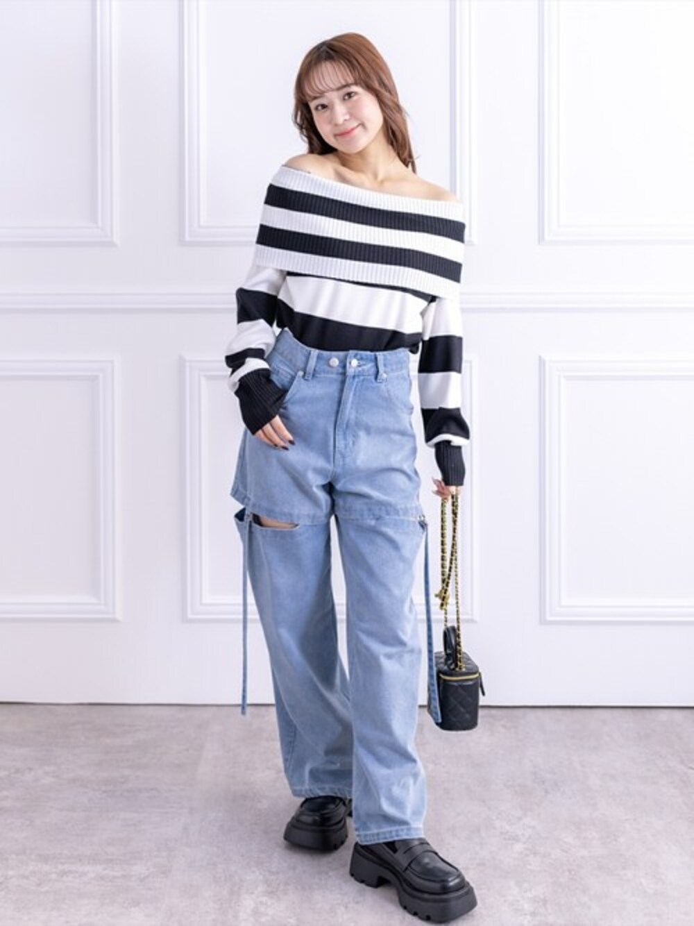clear(クリア)(clear)のニット/セーター「≪再入荷≫オフショル長袖ニットトップス[フェミニン 着回し抜群 スタイルアップ]」を使ったコーディネート