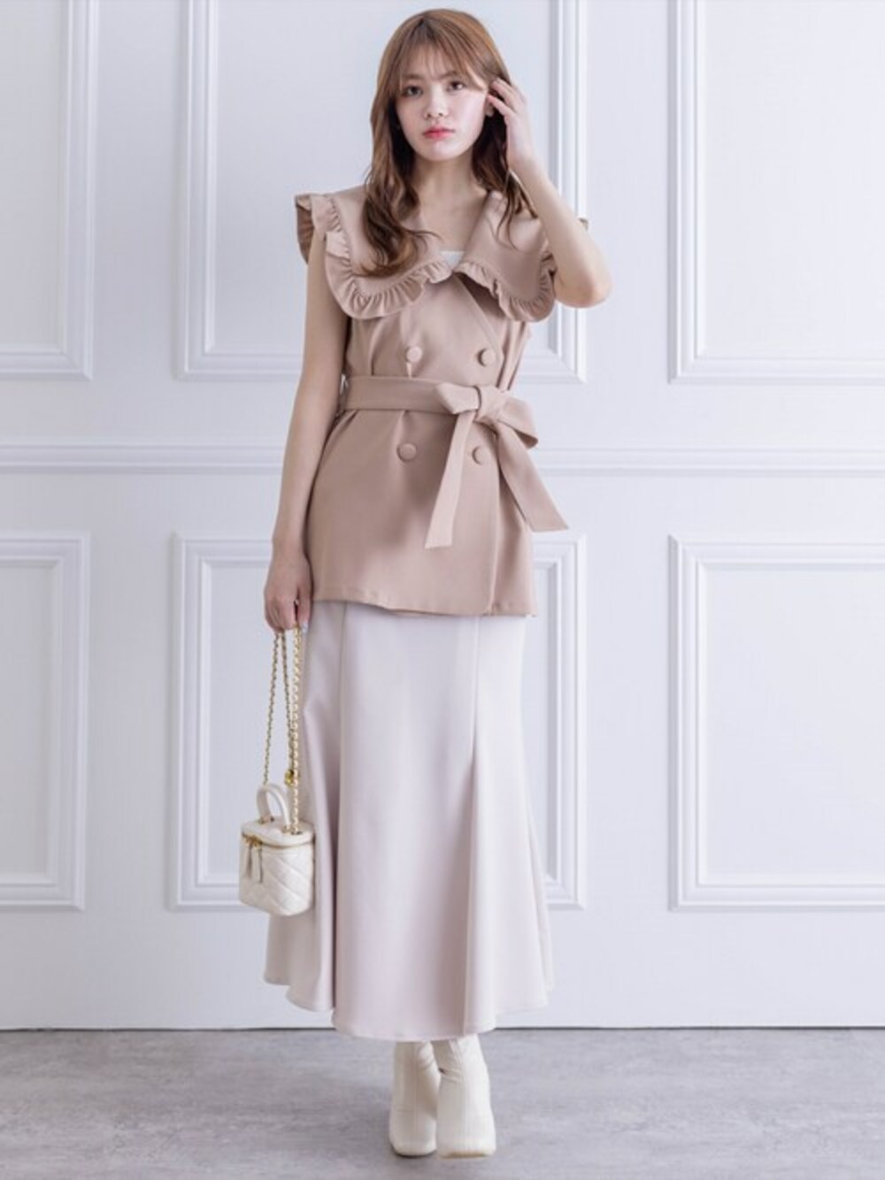 clear(クリア)(clear)のベスト「ビッグカラーフリルジレ[ガーリー レイヤード ウエストマーク]≪再入荷≫」を使ったコーディネート