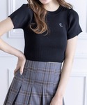 clear(クリア)(clear)のニット/セーター「ワンポイント刺繍半袖ショート丈ニットトップス[オフィスカジュアル 着回し抜群 大人 カジュアル] ≪2024AW新作≫」を使ったコーディネート