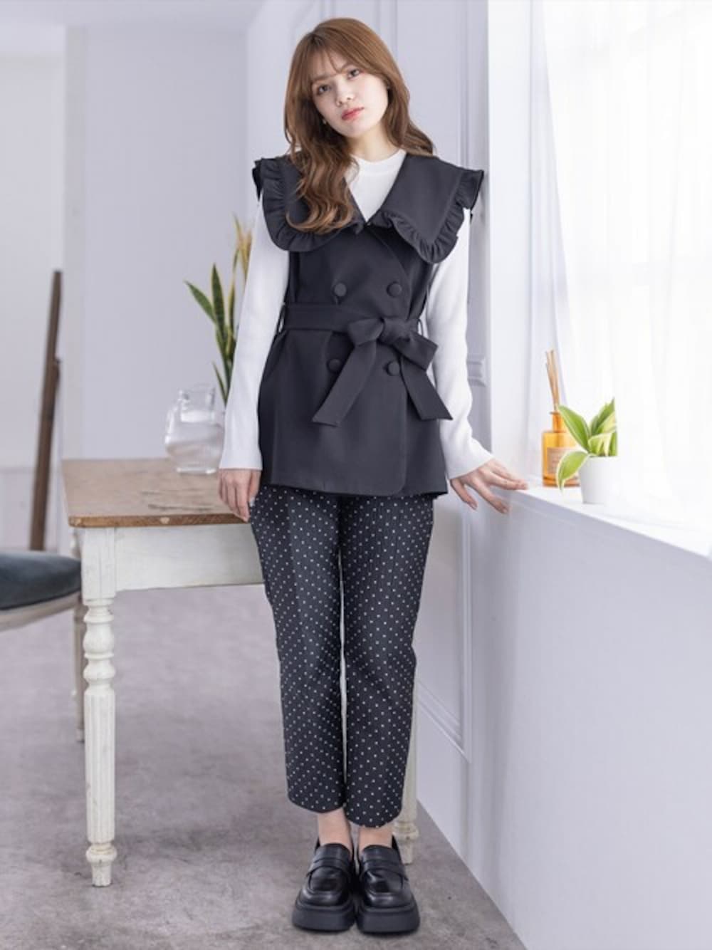 clear(クリア)(clear)のベスト「ビッグカラーフリルジレ[ガーリー レイヤード ウエストマーク]≪再入荷≫」を使ったコーディネート