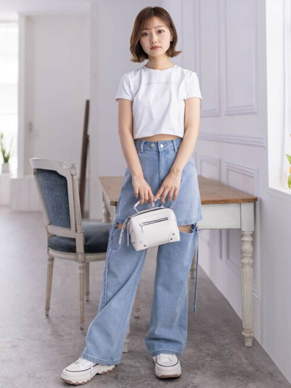 clear(クリア)(clear)のTシャツ/カットソー「ラインストーンロゴチビTシャツ≪2024SS≫」を使ったコーディネート