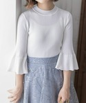 袖がフレアになっていて女性らしいニットトップス。5分袖なので、春から初夏まで着ていただけます!ニットの質感が柔らかく肌触りが良いです♪