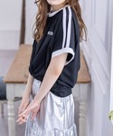 トレンドのラインが入っているスポーティなTシャツ。オーバーサイズなのでラフに着こなしていただけます!胸元のワッペンがさりげないアクセントです◎