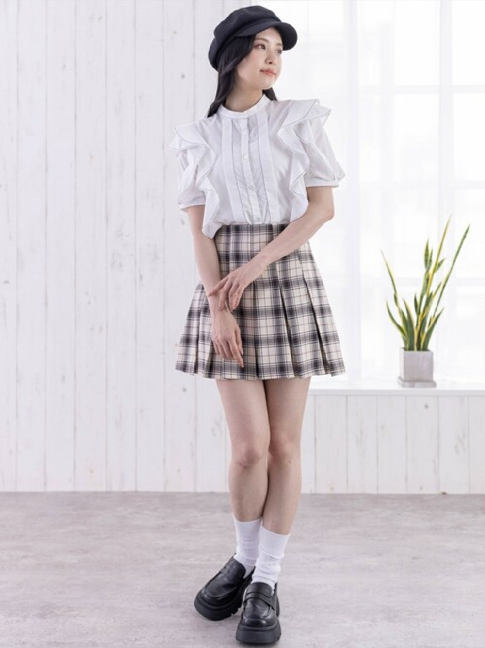 clear(クリア)(clear)のシャツ/ブラウス「フリルデザイン配色ステッチ半袖ブラウス≪2024SS≫」を使ったコーディネート
