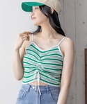 フロントのドロストデザインが、キャミの丈感調整ができるのでお好みの長さで着ていただけます!また、ボーダーが可愛らしいので1枚でもお使いいただけます。
