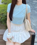 トレンドのラインストーンが胸元にあしらわれているTシャツ。コンパクトなシルエットなので自然とスタイルアップが叶います♪どんなアイテムとも相性が良く着回し力抜群です!