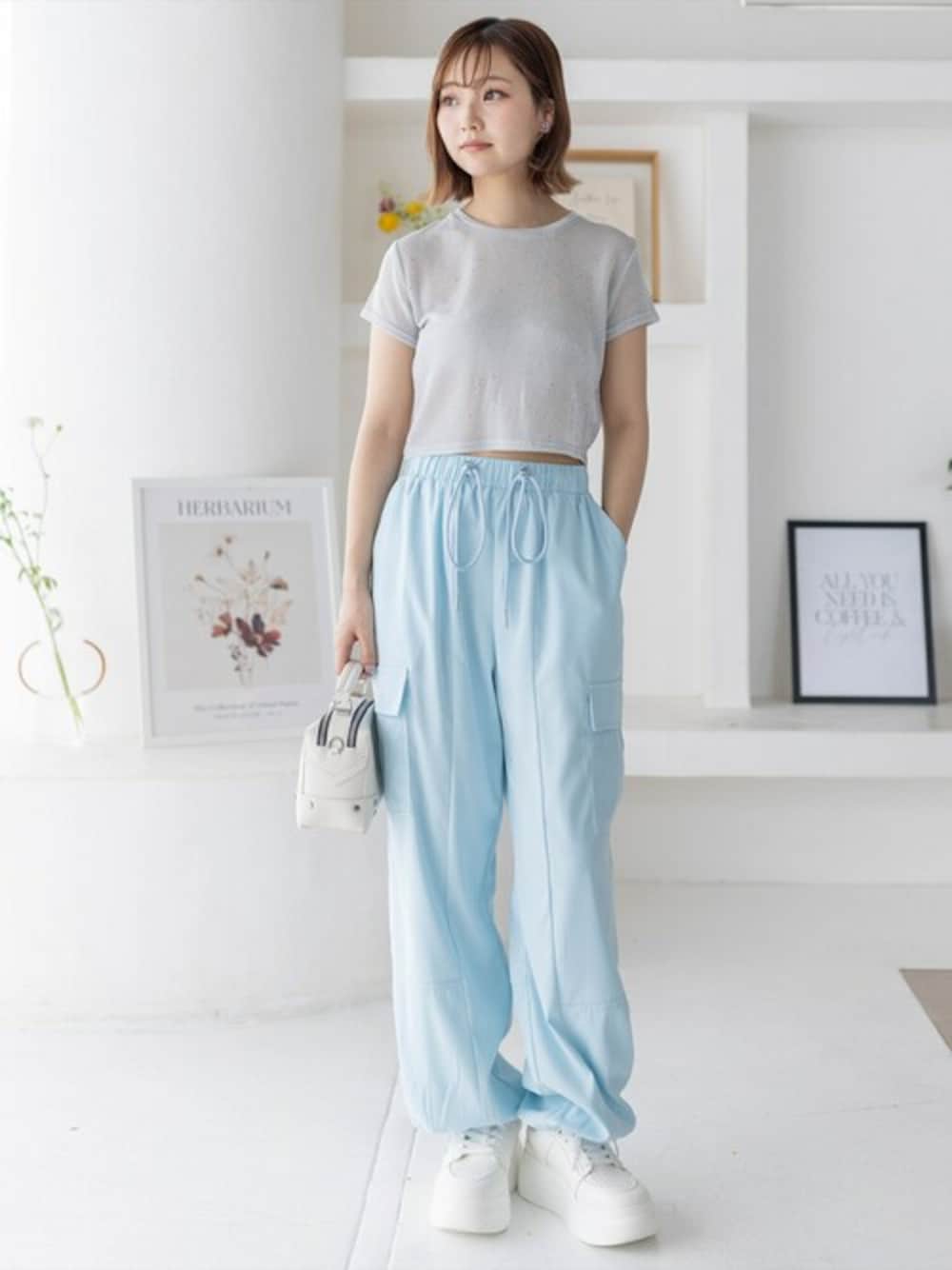 clear(クリア)(clear)のTシャツ/カットソー「ラメチビTシャツ[ショート丈 半袖 大人 カジュアル]≪再入荷≫」を使ったコーディネート