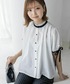 シンプルながらも首元と袖が配色になっていて目を引くブラウス♪さらに首元のフリルと袖のリボンが可愛らしく、女性らしさを演出してくれます。前身頃にタックが入っていることにより細見え効果も◎