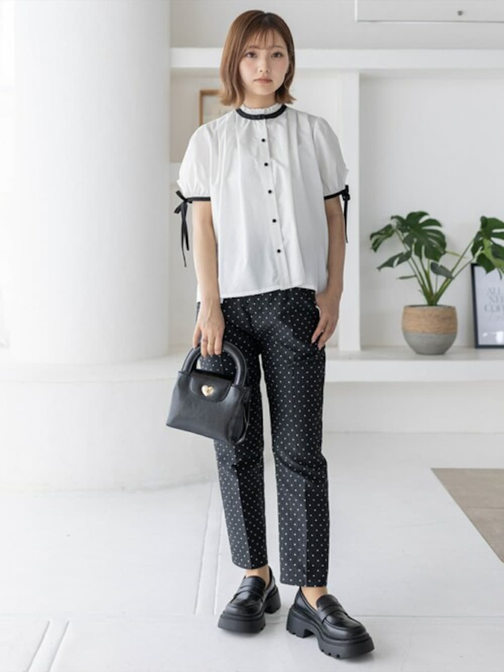 clear(クリア)(clear)のシャツ/ブラウス「配色フリルネックタックブラウス≪2024SS≫」を使ったコーディネート
