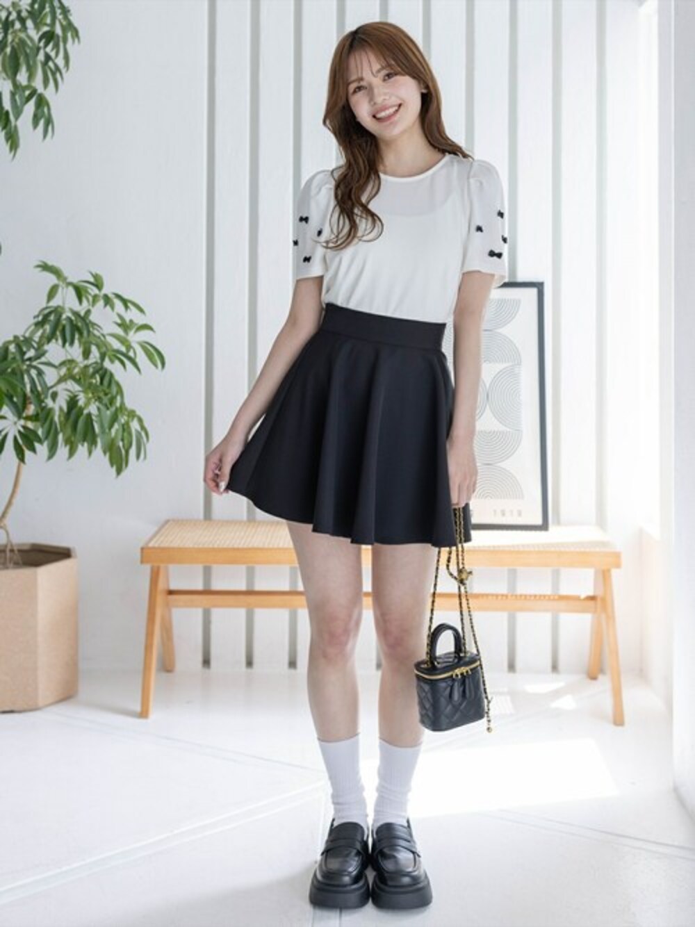 clear(クリア)(clear)のTシャツ/カットソー「バックジップ袖リボンフ半袖カットソートップス[バレエコア ガーリー カジュアル]≪再入荷≫」を使ったコーディネート