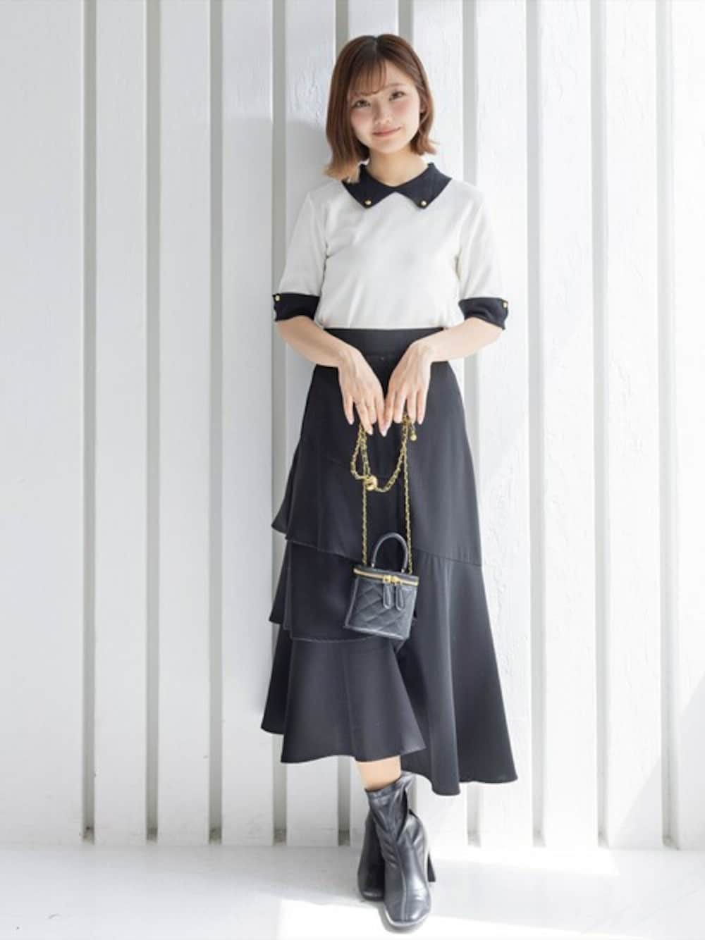 clear(クリア)(clear)のニット/セーター「配色襟5分袖ニットトップス[オフィスカジュアル 着回し抜群 大人]≪再入荷≫」を使ったコーディネート