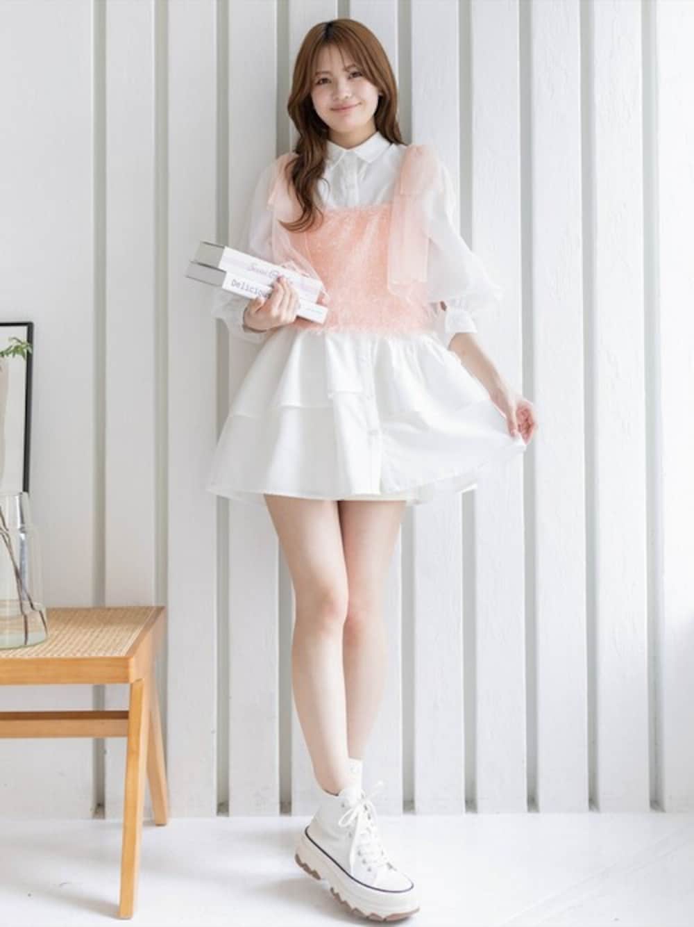 clear(クリア)(clear)のベスト「肩チュールリボンフリンジビスチェ」を使ったコーディネート